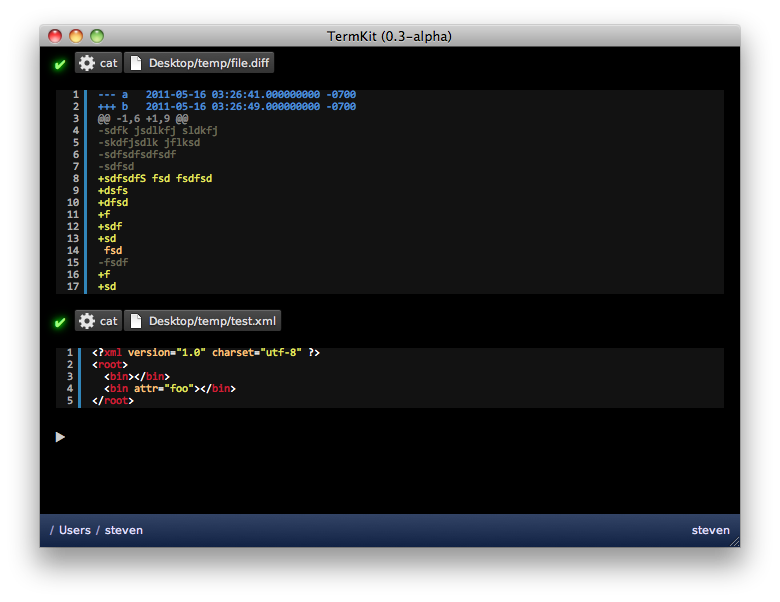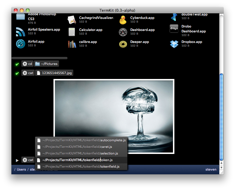 TermKit: next gen terminal / command application, built out of WebKit and Node.js.